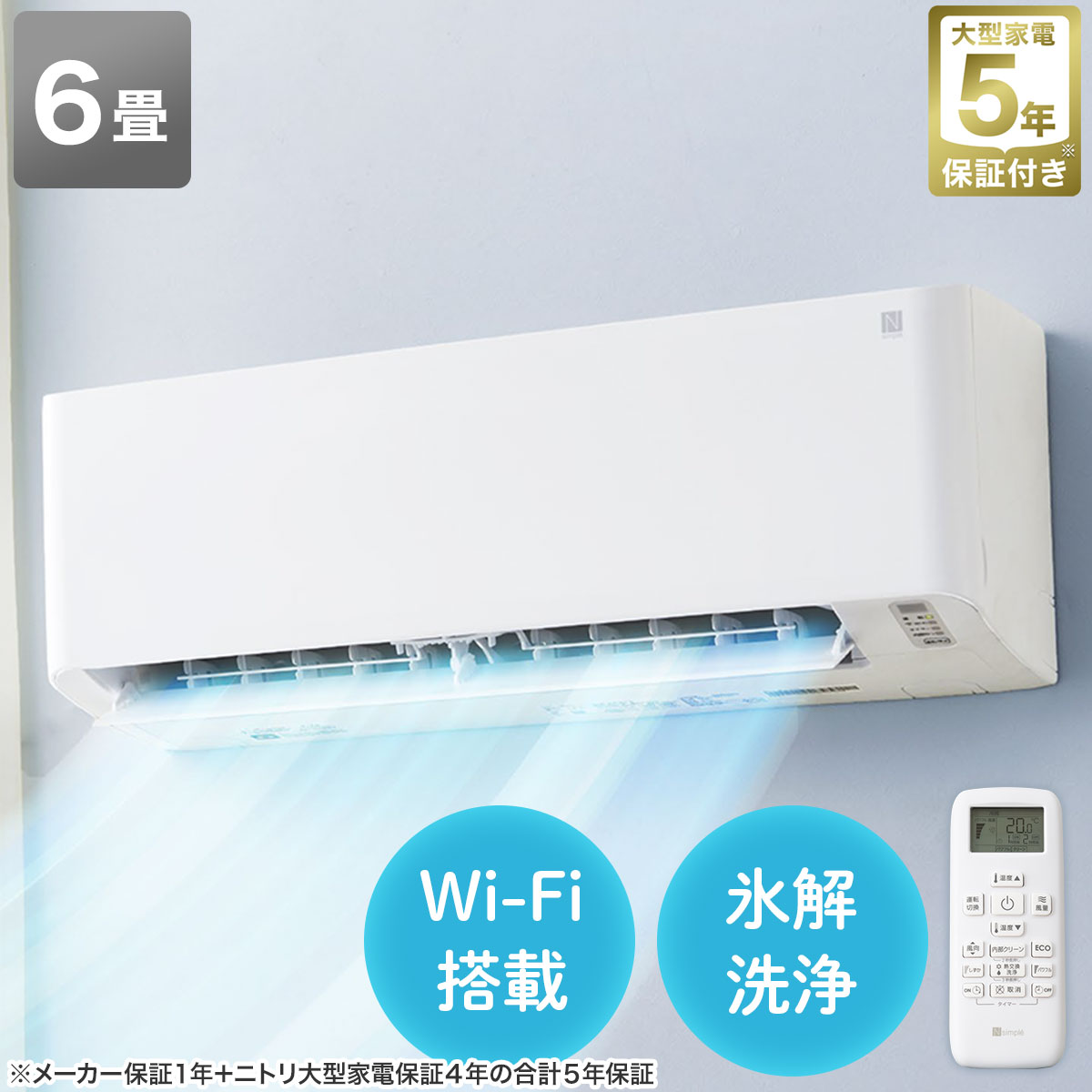 Wi-Fi エアコン 6畳用 (標準取付工事無し) ニトリ 【配送員】 【1年保証】 価格:49990円 |